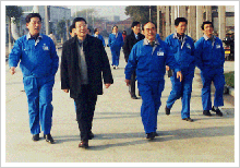 時任國務(wù)院副總理吳邦國(右二)視察民豐并題詞 時任浙江省委書記張德江(右一)視察民豐
