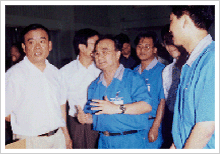 時任浙江省副省長陳加元(左二)視察民豐 時任嘉興市市長陳德榮(左三)在民豐調(diào)研