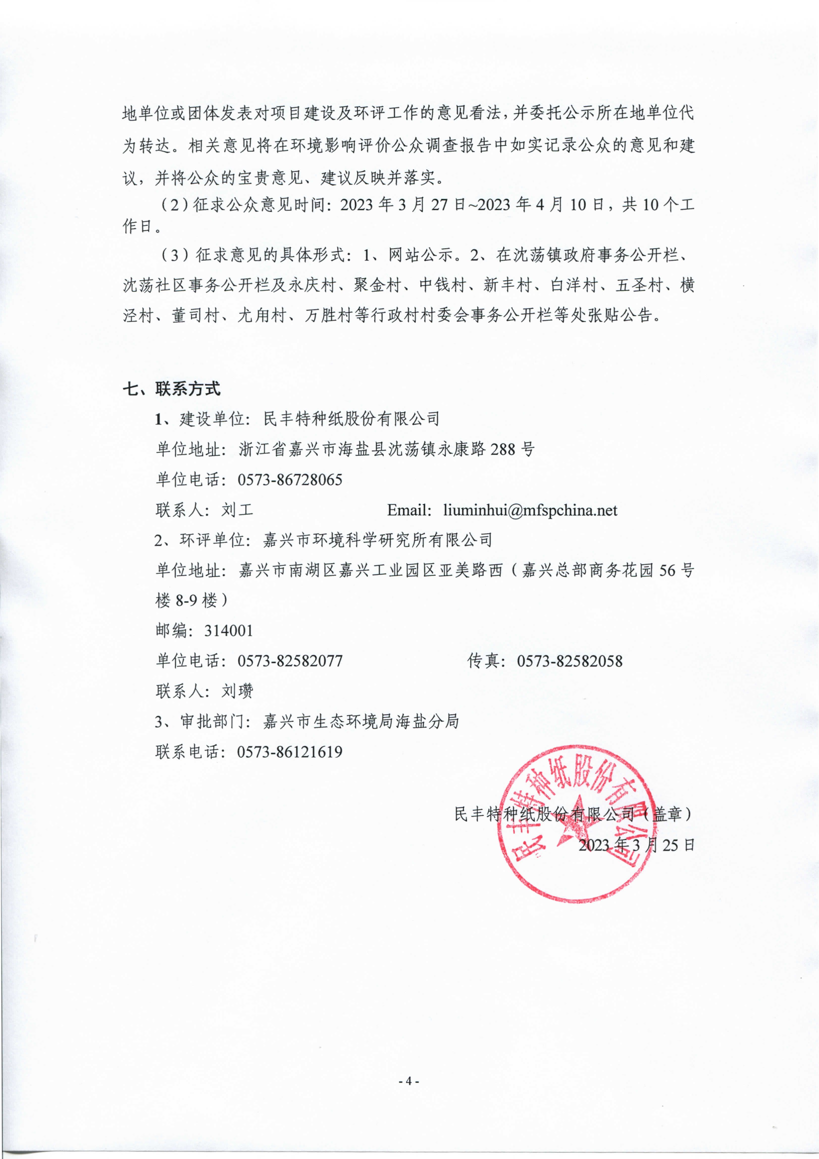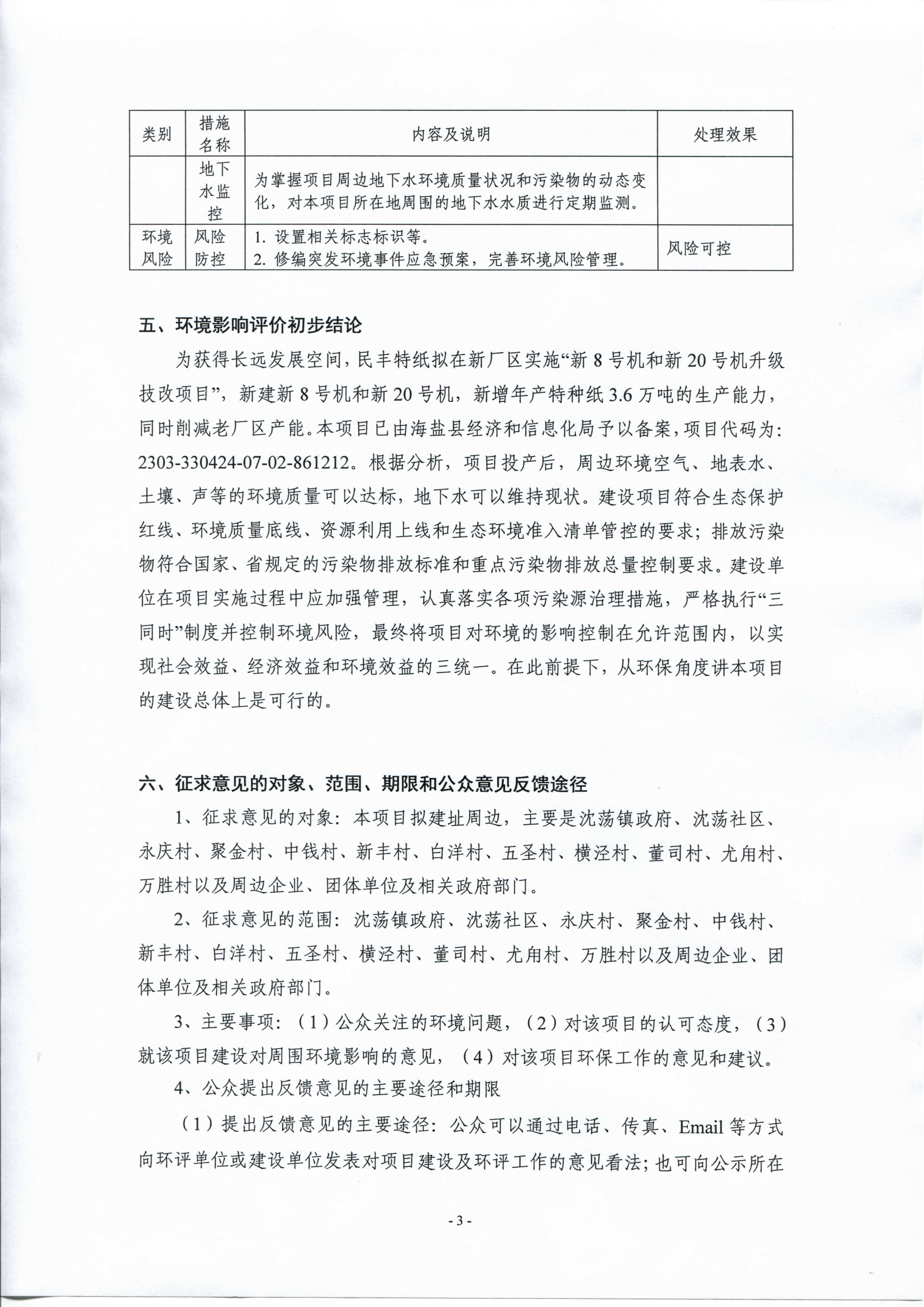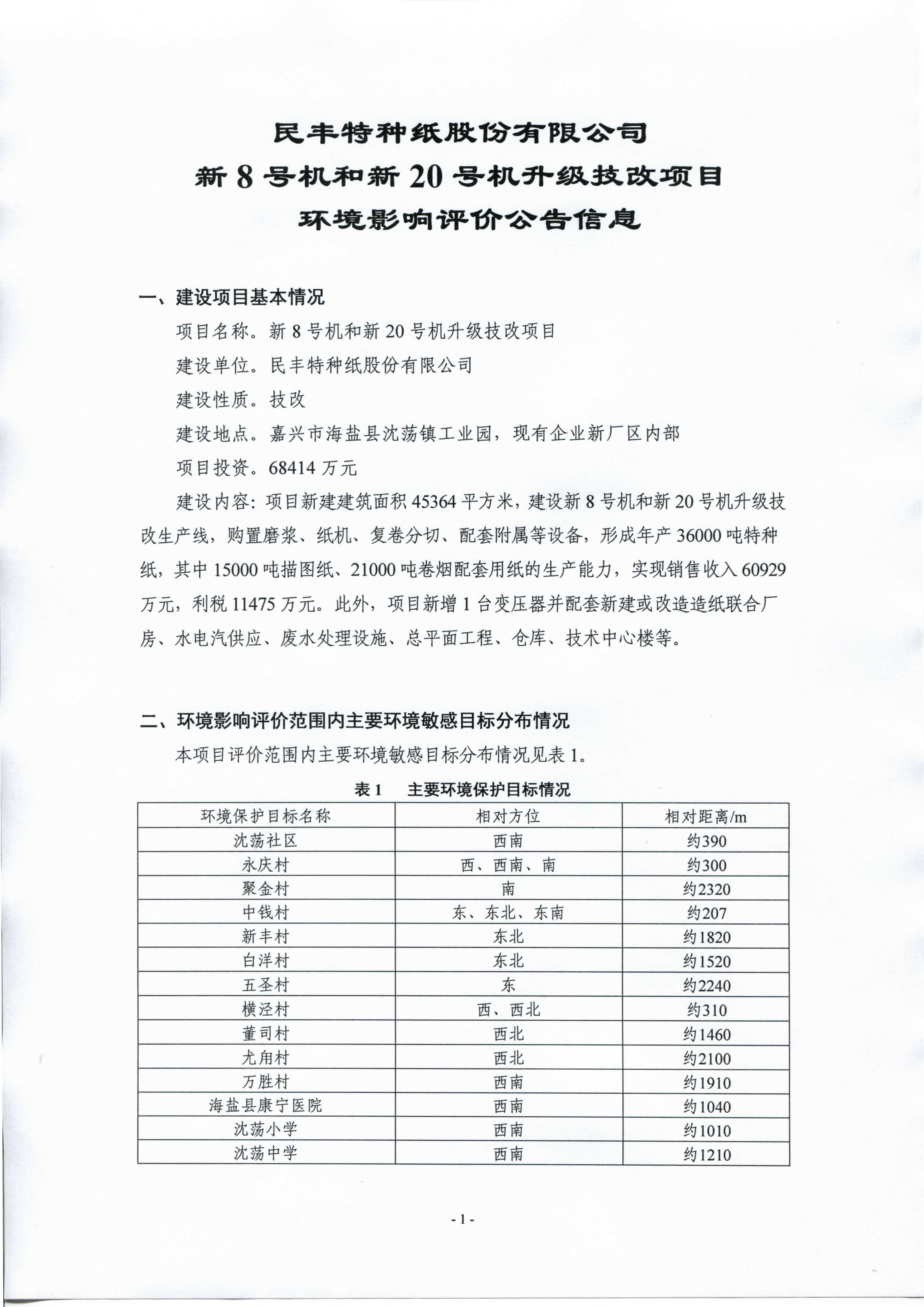 民豐特種紙股份有限公司 新8號(hào)機(jī)和新20號(hào)機(jī)升級(jí)技改項(xiàng)目 環(huán)境影響評(píng)價(jià)公告信息