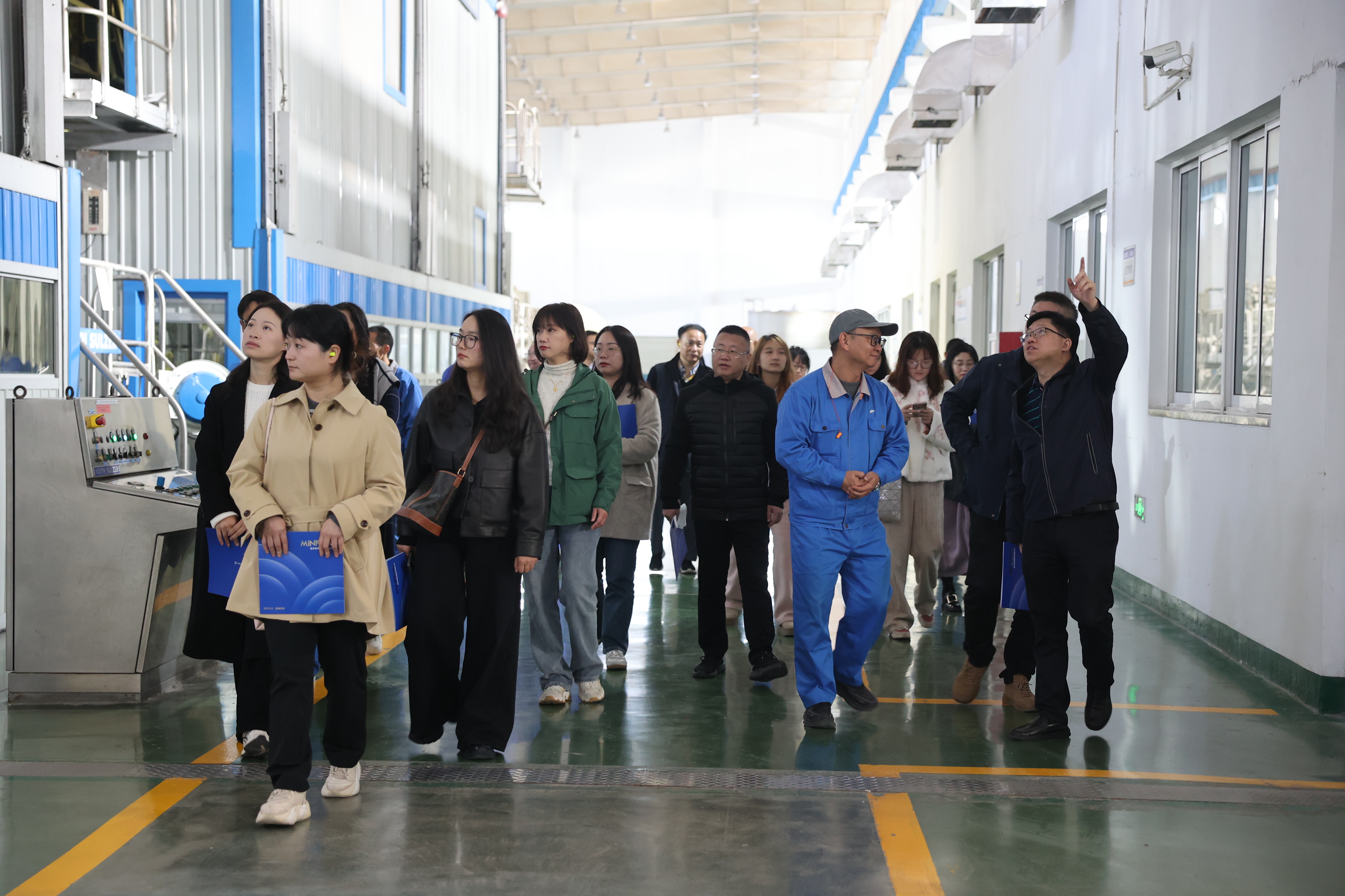 在海鹽分廠聯(lián)合廠房內(nèi),全國媒體社長總編一行參觀了1號機和18號機兩條卷煙紙生產(chǎn)線,觀摩了一張紙的生產(chǎn)流程。在“新質(zhì)生產(chǎn)力”成為社會發(fā)展熱詞的今天,造紙行業(yè)也迎來了一場深刻的綠色高質(zhì)量變革。公司通過實施可持續(xù)發(fā)展理念、科技創(chuàng)新、轉(zhuǎn)型升級來構(gòu)建新質(zhì)生產(chǎn)力,同時加強上下游協(xié)同創(chuàng)新,以促進(jìn)企業(yè)高質(zhì)量發(fā)展。在姚名歡、劉耀斌的現(xiàn)場解說中,媒體人了解了民豐特紙深厚的文化底蘊和領(lǐng)先的技術(shù)水平,同時對企業(yè)在綠色制造、可持續(xù)發(fā)展以及自動化生產(chǎn)、智能化管理方面的先進(jìn)理念和豐碩成果表示高度贊賞。江海晚報編輯部主任孫耀感嘆:“整個民豐特紙生產(chǎn)車間,不僅是一個高效生產(chǎn)的場所,更是技術(shù)與創(chuàng)新的展示窗口。”南寧市融媒體中心副總編輯兼南寧日報報社社長王海云表示,在民豐看到了中國造紙業(yè)未來發(fā)展的無限可能。