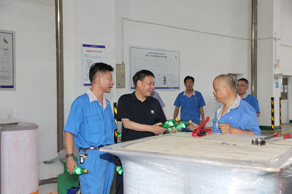 在民豐特紙黨委書記、總經(jīng)理曹繼華陪同下,孟春華先后來到各紙機(jī)生產(chǎn)現(xiàn)場(chǎng),為員工們送上了清涼飲料,對(duì)他們不畏高溫、忠于職守、辛勤工作表示感謝,并叮囑大家注意勞逸結(jié)合,切實(shí)做好防暑降溫工作,確保安全度夏。